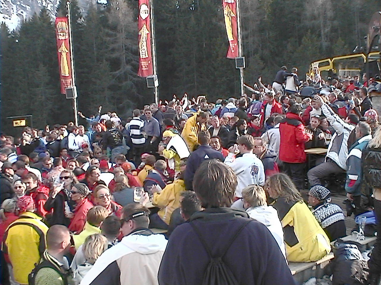 Klösterle, 22. - 29. März 2003 Nach mehreren Sommerurlauben mit Frosch-Sportreisen nun der erste Winterurlaub. Klösterle liegt etwas außerhalb der großen Skigebiete am Arlberg St. Anton und Lech / Zürs. Vor dem Skilaufen stand somit jeden Morgen zunächst eine Busfahrt auf dem Programm.